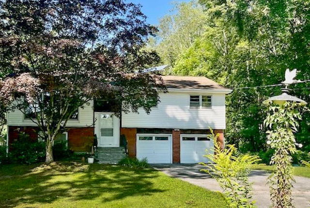 Gleaming hardwood floors flow throughout these airy rooms, creating warmth and character at every turn. Natural light pours through large windows, showcasing views of the surrounding greenery. The charming brick fireplace anchors the space, while sliding glass doors blur the lines between indoor comfort and outdoor serenity.